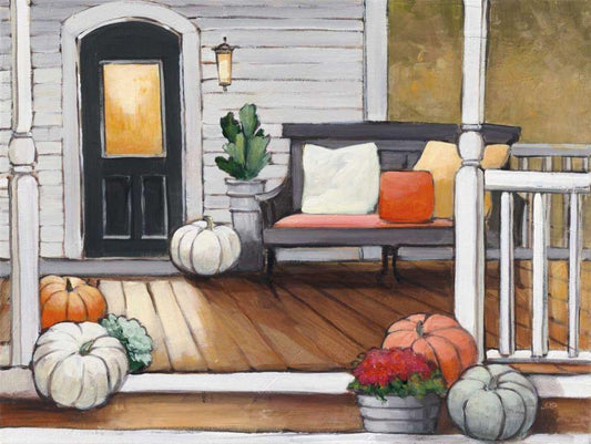 October Porch White Modern Wood Framed Art Print with Double Matting by Purinton, Julia