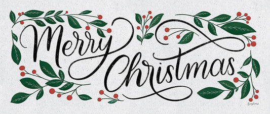 Merry Christmas White Modern Wood Framed Art Print with Double Matting by Adams, Emily