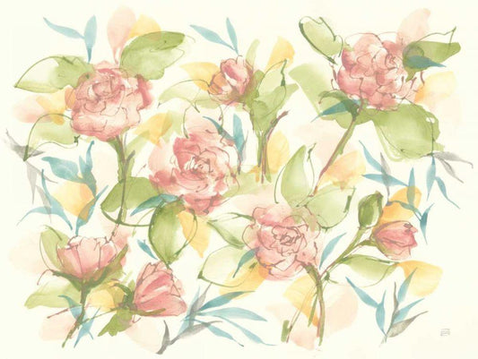Blush Camellias White Modern Wood Framed Art Print with Double Matting by Paschke, Chris