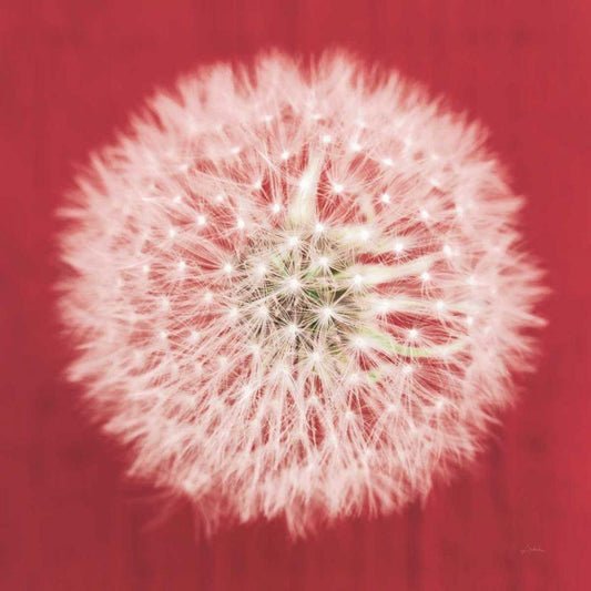 Dandelion on Red III White Modern Wood Framed Art Print with Double Matting by Aledanda