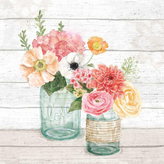 Masons Bouquet White Modern Wood Framed Art Print with Double Matting by Vertentes, Jeanette