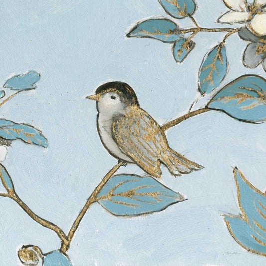 Toile Birds IV White Modern Wood Framed Art Print with Double Matting by Adams, Emily