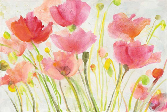 Fluorescent Poppies White Modern Wood Framed Art Print with Double Matting by Hristova, Albena