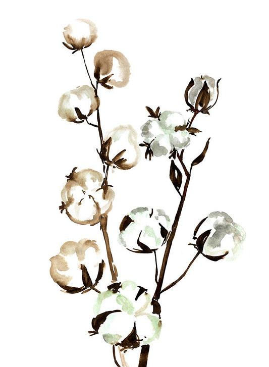 Watercolor cotton branch II White Modern Wood Framed Art Print with Double Matting by Laiz Blursbyai, Rosana
