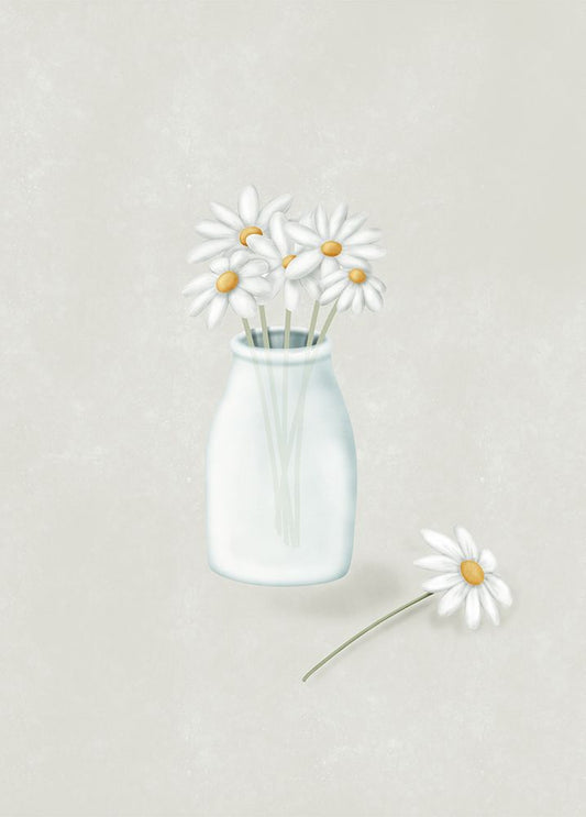 Daisy Flowers White Modern Wood Framed Art Print with Double Matting by Eleonora, Aminah