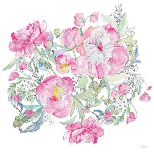 Pink Peonies White Modern Wood Framed Art Print with Double Matting by Rice, Kristy