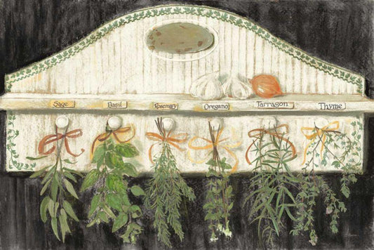 Herbs on Pegs Black White Modern Wood Framed Art Print with Double Matting by Rowan, Carol