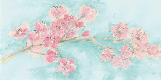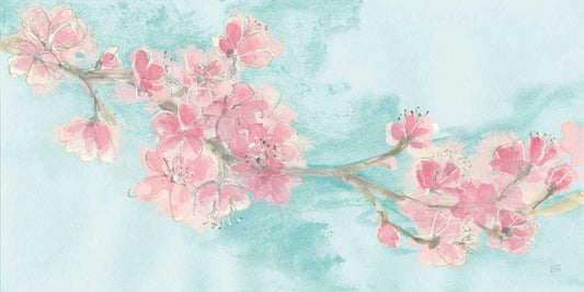 Cherry Blossom I Teal White Modern Wood Framed Art Print with Double Matting by Paschke, Chris
