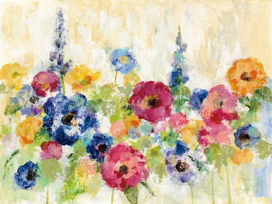 Sunshine Field Flowers White Modern Wood Framed Art Print with Double Matting by Vassileva, Silvia
