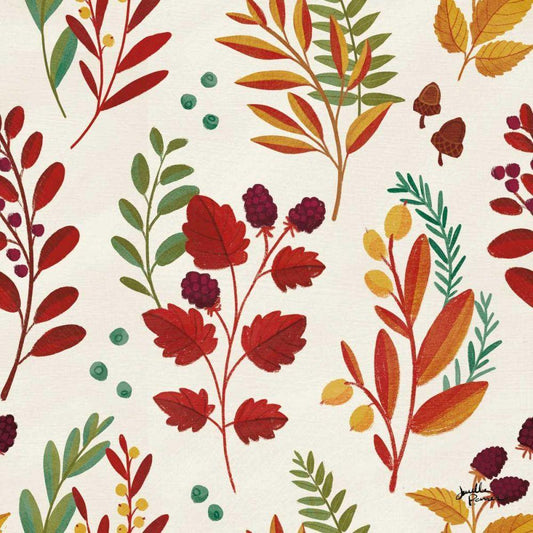 Floursack Autumn Pattern I White Modern Wood Framed Art Print with Double Matting by Nai, Danhui