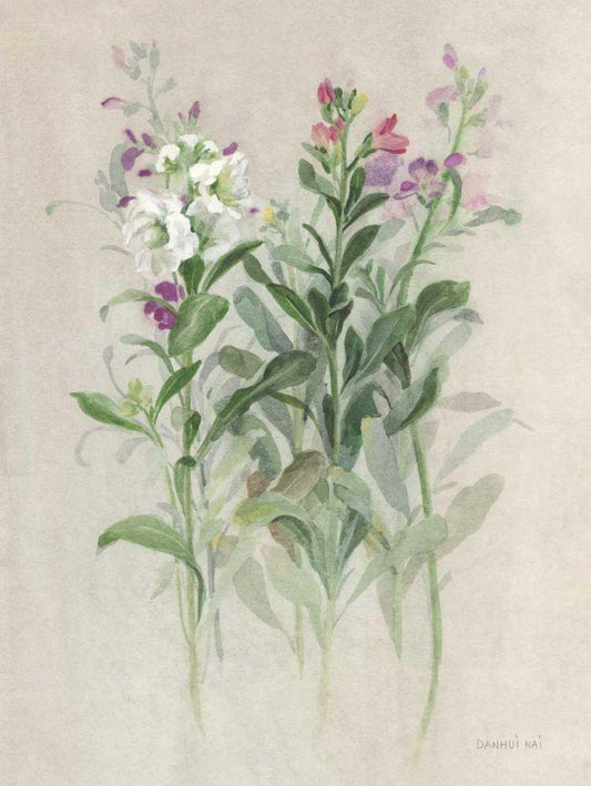 Sprigs of June I White Modern Wood Framed Art Print with Double Matting by Nai, Danhui