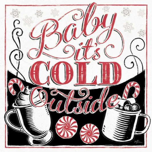 Merry Little Christmas BWR White Modern Wood Framed Art Print with Double Matting by Penner, Janelle