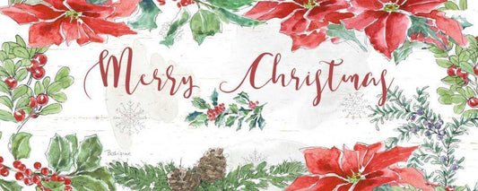 Watercolor Poinsettia Merry Christmas White Modern Wood Framed Art Print with Double Matting by Grove, Beth