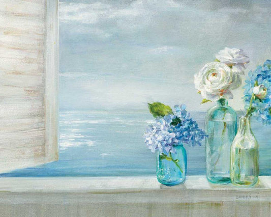 A Beautiful Day At the Beach - 3 Glass Bottles White Modern Wood Framed Art Print with Double Matting by Nai, Danhui