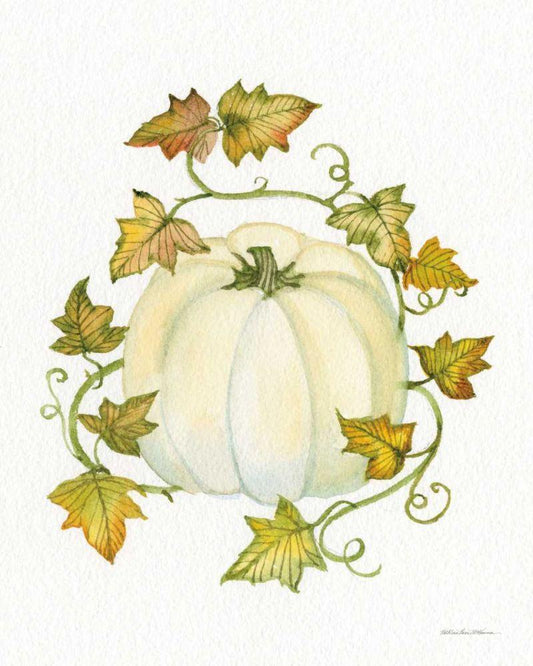 Pumpkin and Vines III White Modern Wood Framed Art Print with Double Matting by McKenna, Kathleen Parr