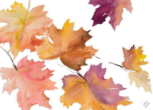 Harvest Leaves I White Modern Wood Framed Art Print with Double Matting by Loreth, Lanie
