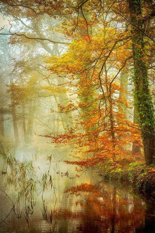 Autumn Forest In The Mist White Modern Wood Framed Art Print with Double Matting by Vitomirov, Igor