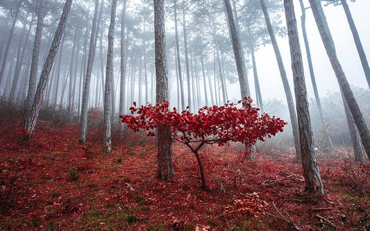Ruby Red Forest White Modern Wood Framed Art Print with Double Matting by Wustenhagen, Dirk