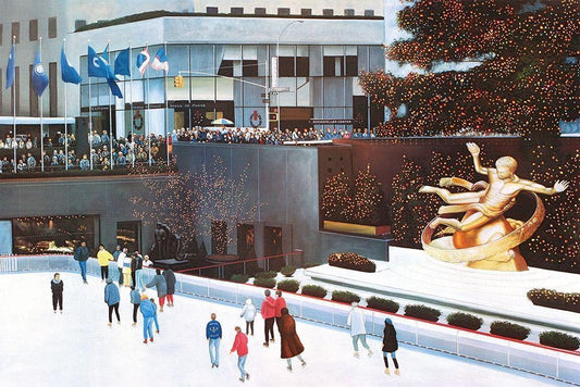 Rockefeller Center White Modern Wood Framed Art Print with Double Matting by Romanello, Diane