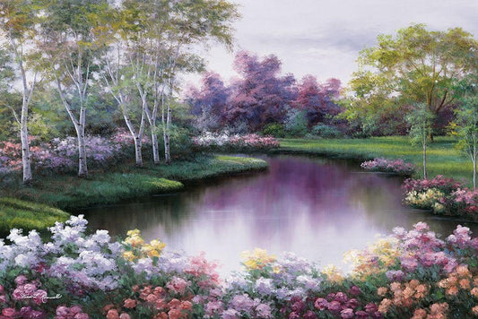 Springtime Symphony White Modern Wood Framed Art Print with Double Matting by Romanello, Diane