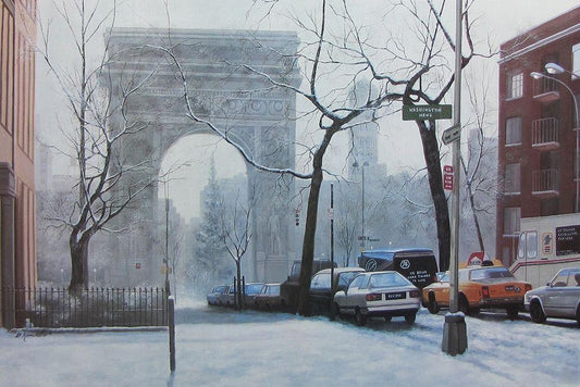 Washington Square White Modern Wood Framed Art Print with Double Matting by Romanello, Diane