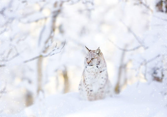 Snow lynx White Modern Wood Framed Art Print with Double Matting by PhotoINC Studio