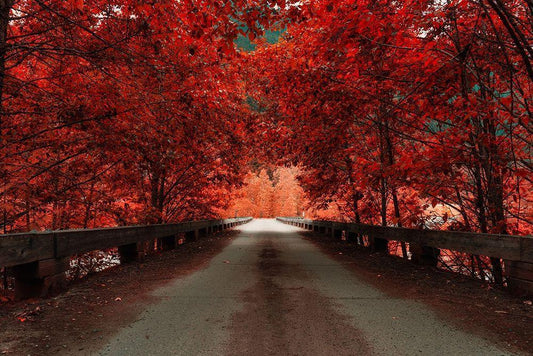 Red Trees Path White Modern Wood Framed Art Print with Double Matting by Kostka, Vladimir