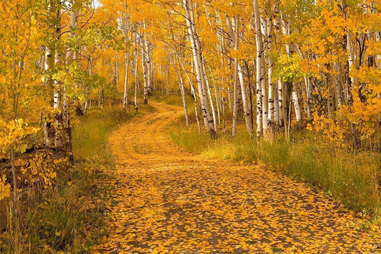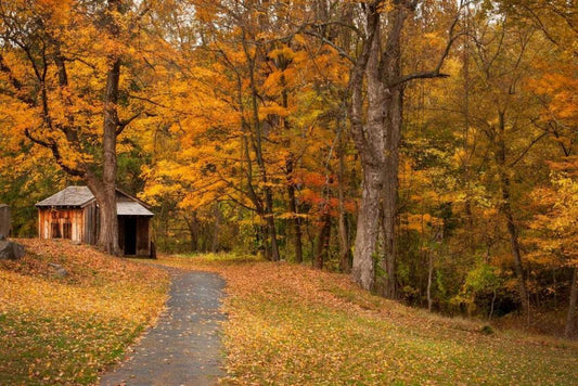 Autumn Path White Modern Wood Framed Art Print with Double Matting by Mikaels, Natalie