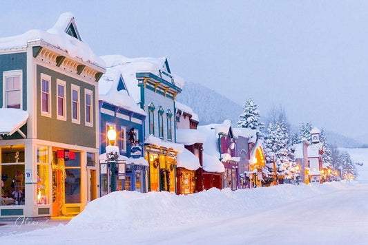 Elk Avenue Morning Glow White Modern Wood Framed Art Print with Double Matting by Leacock, J.C.