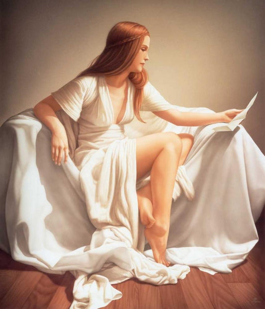 Springtime / Le Printemps White Modern Wood Framed Art Print with Double Matting by Cot, Pierre-Auguste