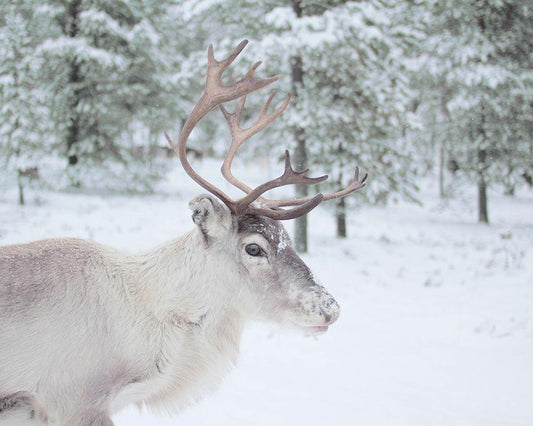 Reindeer in the Woods White Modern Wood Framed Art Print with Double Matting by Straatsma, Leah