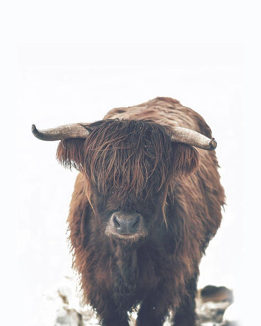 Winter Highland Cow White Modern Wood Framed Art Print with Double Matting by Straatsma, Leah