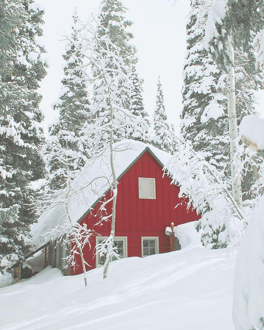 Red Winter Cabin White Modern Wood Framed Art Print with Double Matting by Straatsma, Leah