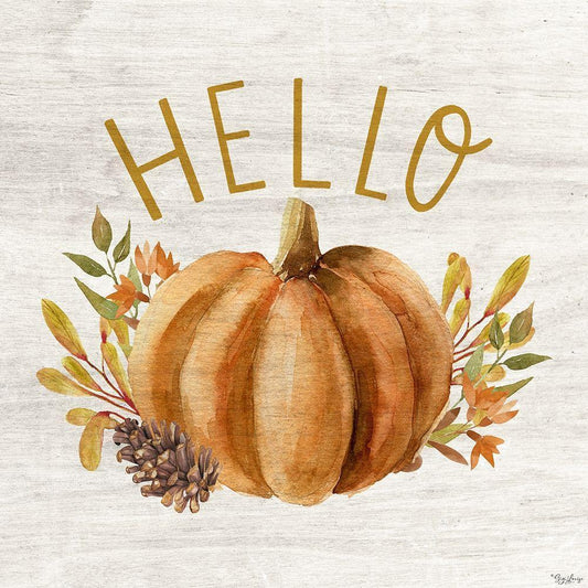 Hello Pumpkin White Modern Wood Framed Art Print with Double Matting by Louise, Gigi