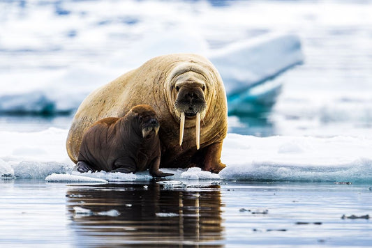 Walrus With Calf White Modern Wood Framed Art Print with Double Matting by Lewis-Bevan, Wyn
