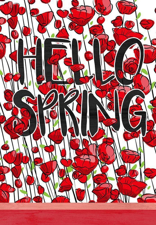 Hello Spring White Modern Wood Framed Art Print with Double Matting by Kimberly, Allen