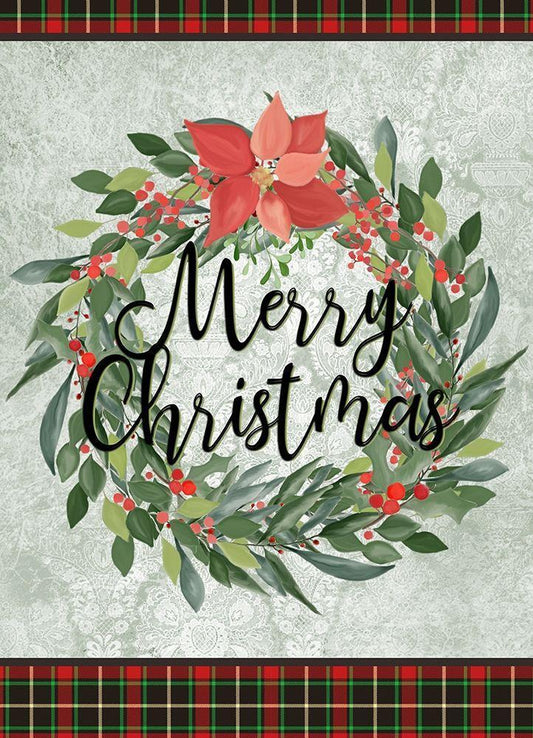 Merry Christmas Wreath White Modern Wood Framed Art Print with Double Matting by Kimberly, Allen