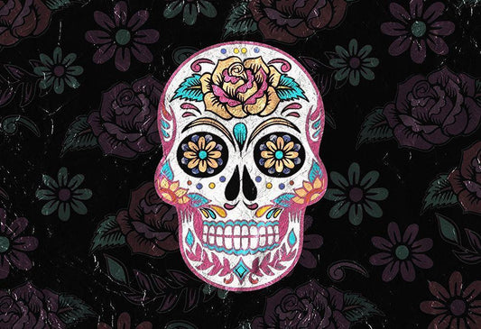 Roses and Skull White Modern Wood Framed Art Print with Double Matting by Kimberly, Allen