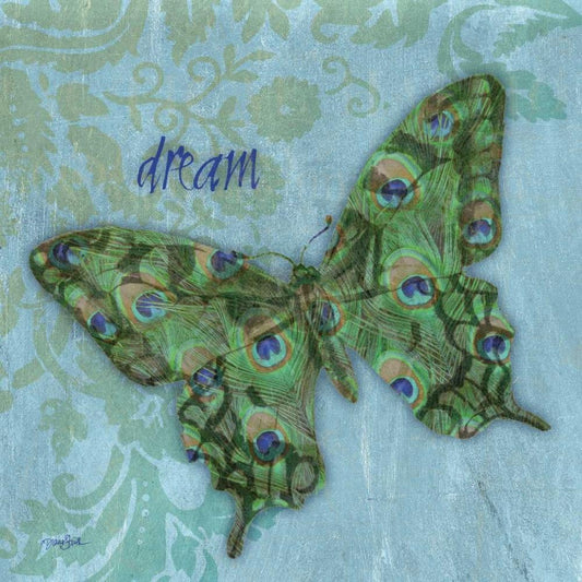 Peacock Bfly 2 White Modern Wood Framed Art Print with Double Matting by Stimson, Diane