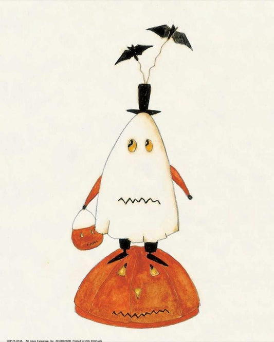 Pumpkin Ghost White Modern Wood Framed Art Print with Double Matting by DiPaolo, Dan