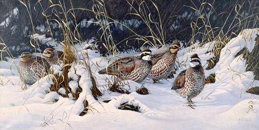 Close To Cover - Bobwhites White Modern Wood Framed Art Print with Double Matting by Goebel, Wilhelm