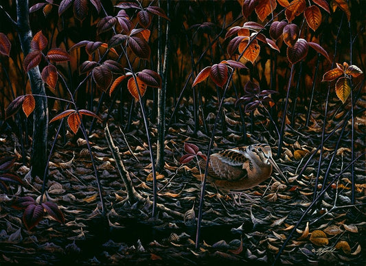 Woodcock On The Wing White Modern Wood Framed Art Print with Double Matting by Goebel, Wilhelm