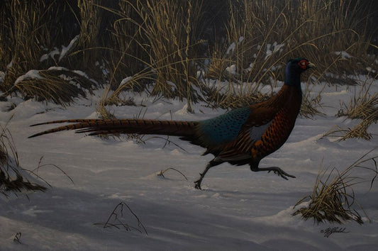 Strauch Pheasant White Modern Wood Framed Art Print with Double Matting by Goebel, Wilhelm