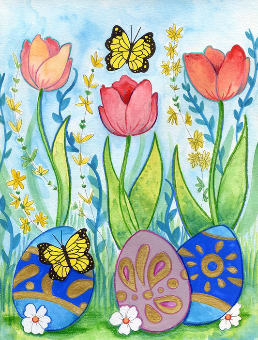 Egg Hunt White Modern Wood Framed Art Print with Double Matting by Wade, Valarie