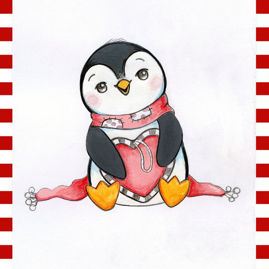 Penguin Slide White Modern Wood Framed Art Print with Double Matting by Wade, Valarie