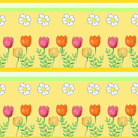 Tulip Flower Pattern White Modern Wood Framed Art Print with Double Matting by Wade, Valarie