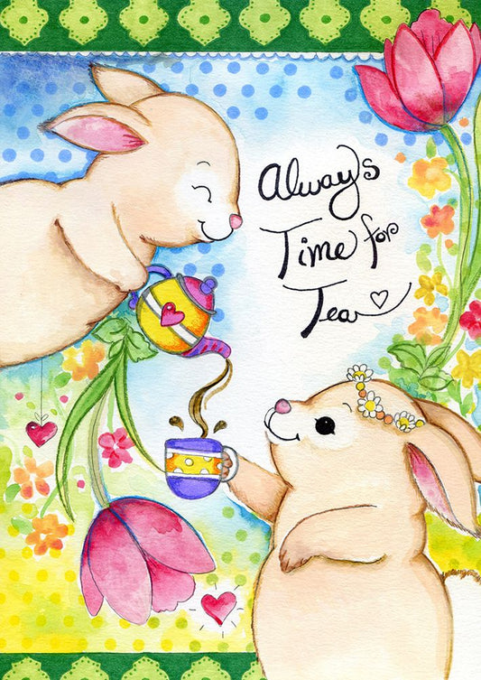 Time for Tea White Modern Wood Framed Art Print with Double Matting by Wade, Valarie
