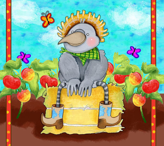 Farmer Crow Pumpkin Patch White Modern Wood Framed Art Print with Double Matting by Wade, Valarie