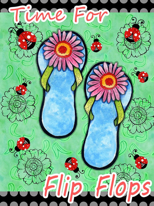 Daisy Flip Flops White Modern Wood Framed Art Print with Double Matting by Wade, Valarie