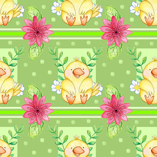 Duckie And Pink Flower White Modern Wood Framed Art Print with Double Matting by Wade, Valarie